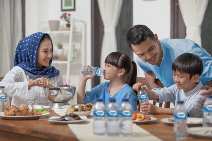 Untuk membiasakan hidrasi yang baik, setiap pagi setelah bangun tidur seluruh anggota keluarga menjalankan rutinitas minum air putih berkualitas dari brand yang terpercaya dan sudah teruji.
